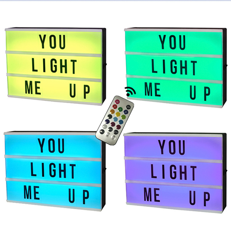Kotak lampu dekorasi Natal, kotak lampu warna A4 dengan lampu putih, warna-warni, kotak lampu berubah warna, kendali jarak jauh, kotak huruf pesan