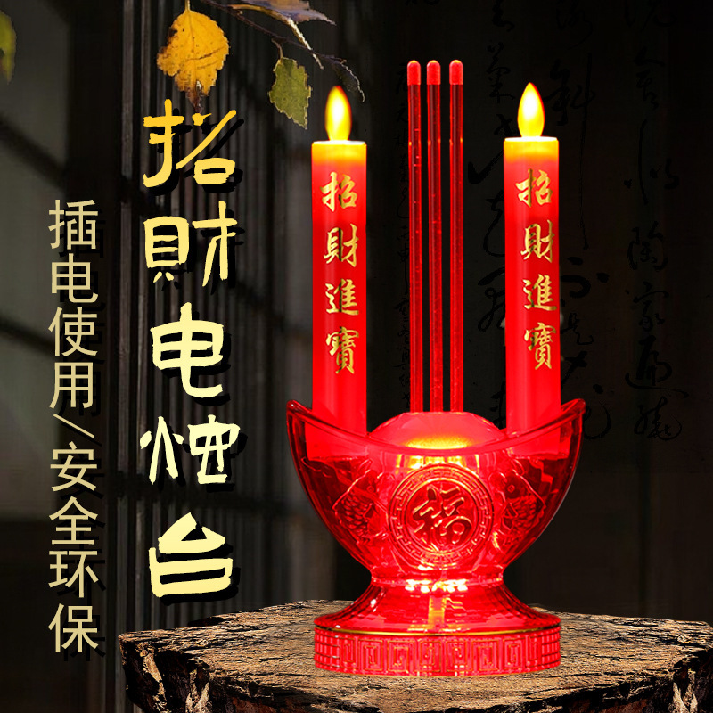 Lampu Lilin Colokan LED Lilin Dupa Elektronik Lampu Meja Dewa Kekayaan Guanyin Lampu Rumah Tangga Buddha Lampu Panjang Dupa Lampu Lotus