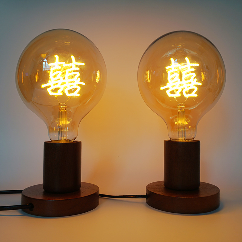 Lampu Ganda Lampu LED Karakter Kebahagiaan Ganda Kreatif Lampu Meja Tempat Tidur Kamar Pernikahan Pengantin Lampu Panjang Pernikahan Hadiah