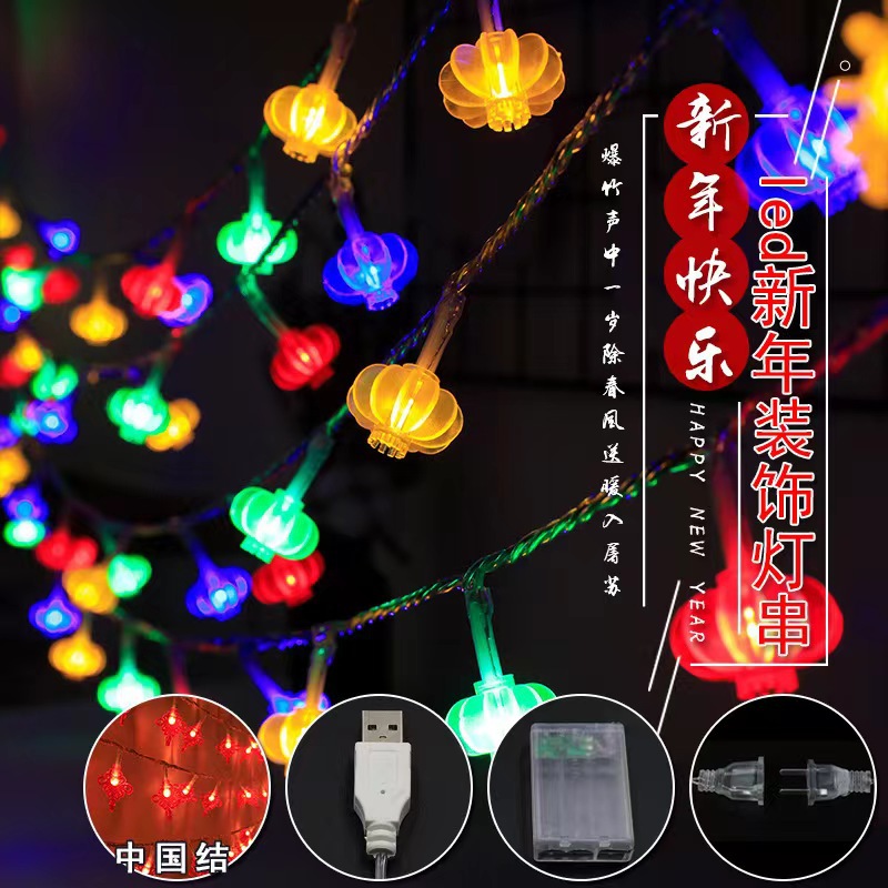 Lampu led kecil tali lentera merah simpul Cina lampu karakter keberuntungan Festival Musim Semi dekorasi Tahun Baru lampu tali surya