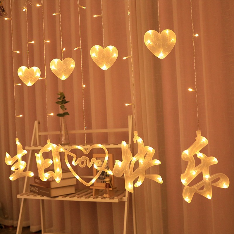 Lampu LED tali untuk acara ulang tahun, tirai kreatif tata letak ruang, lampu bintang, tali lampu Selamat Ulang Tahun