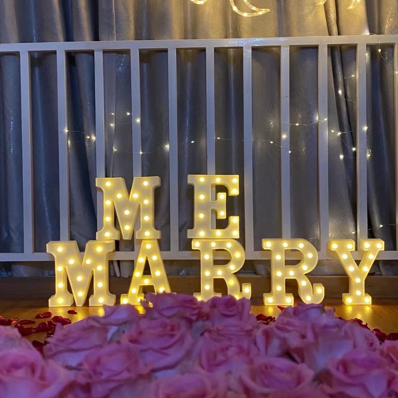 MARRYME lampu lamaran led huruf CINTA lampu neon akrilik lampu Ulang Tahun digital 520 kata bercahaya