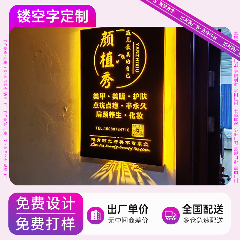 Kotak Lampu Pola Kayu Berongga Kreatif Papan Reklame Kepala Pintu Papan Lampu Plakat Akli Kata Bercahaya
