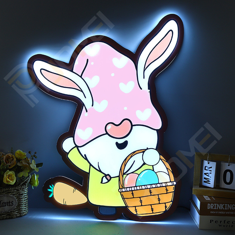 Kotak lampu gantung dinding pabrik Neon esensi tanah Paskah baru kotak ringan ultra-tipis kelinci