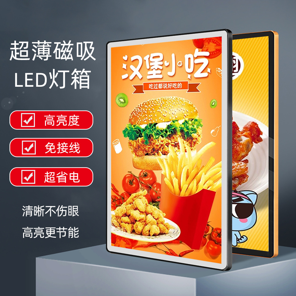 Kotak lampu penyedot magnet aluminium Aloi, lampu iklan LED plat bingkai poster dinding gantung perusahaan katering berkilau bingkai iklan