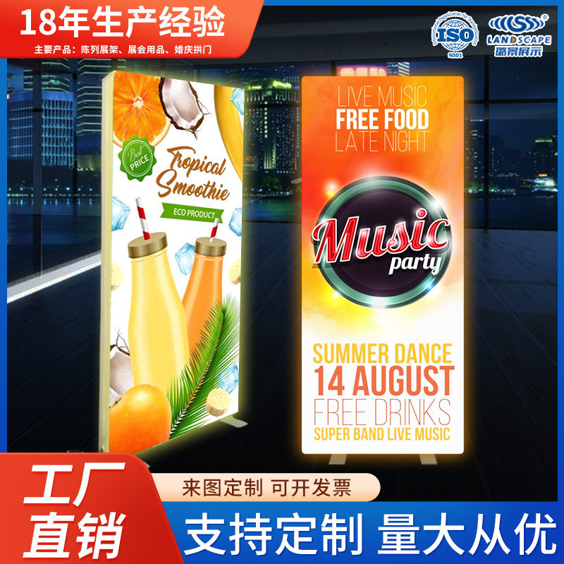Kotak lampu lipat dinding latar belakang pameran bingkai latar belakang bercahaya kotak lampu portabel khaki LED vertikal pertunjukan layar cepat