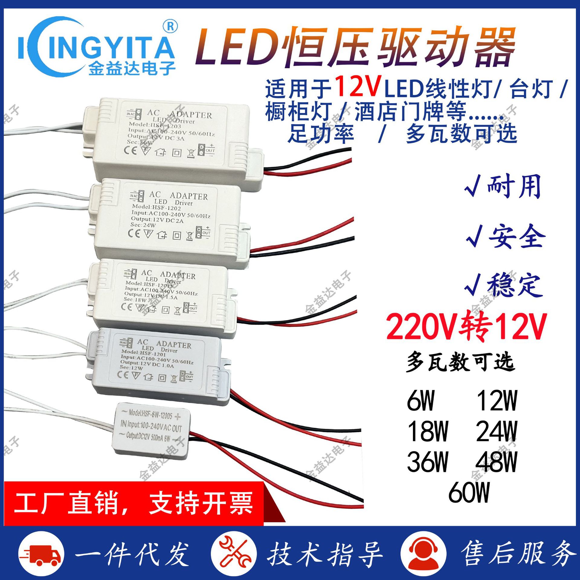 Lampu LED langsung pabrik dengan saklar catu daya penggerak 220V ke 12V telepon seluler transformator bisu ultra-tipis