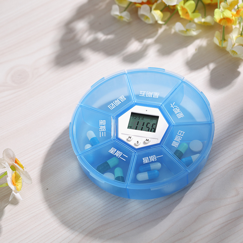 Kotak pil elektronik cerdas led, kotak penyimpanan 7-grid kapasitas besar portabel, kotak pil plastik tahan kelembaban, kotak penyimpan pil perjalanan