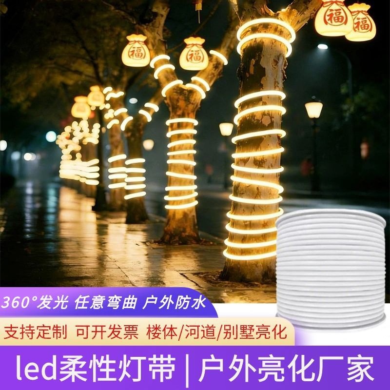 Lampu neon led dengan lampu lembut super terang tahan air luar ruangan dengan lampu garis papan nama iklan bundar 360 fleksibel