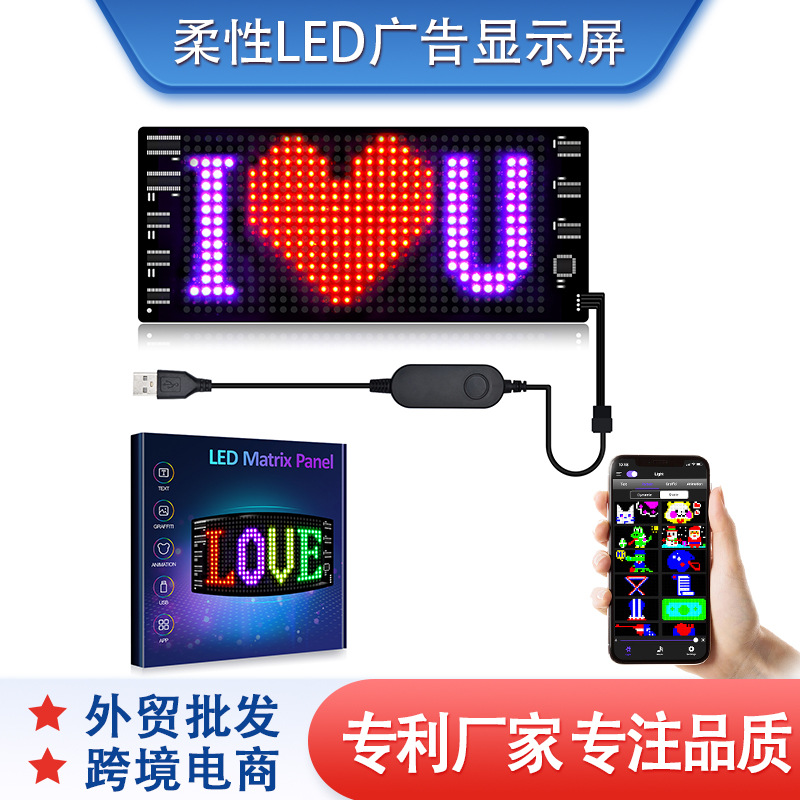 Layar LED fleksibel tahan air 27x12cm, layar lembut, aplikasi Bluetooth, layar mobil, layar LED penuh warna
