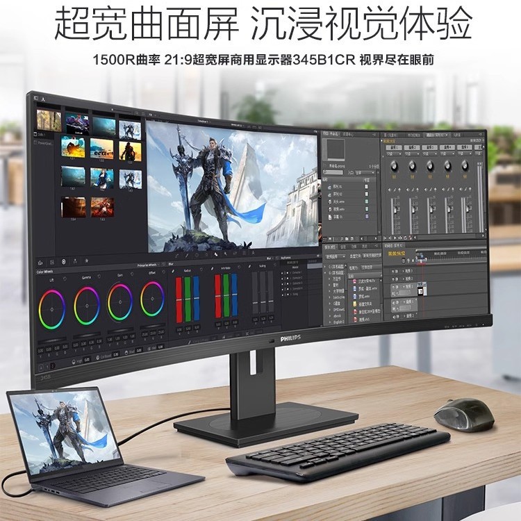 Philips 34 inci 21:9 dengan layar ikan kuasi 4K Esports mengangkat permukaan melengkung monitor komputer 345B1CR