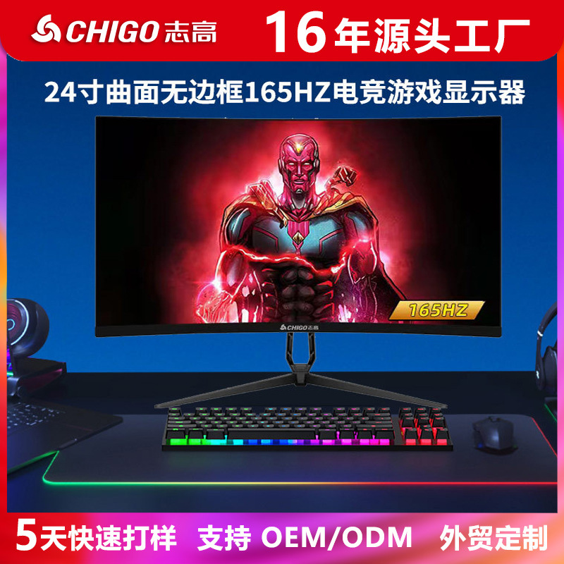 Monitor komputer perdagangan luar negeri 24 inci 2K 144Hz 27 inci e-sport game HD layar LCD permukaan lurus/melengkung