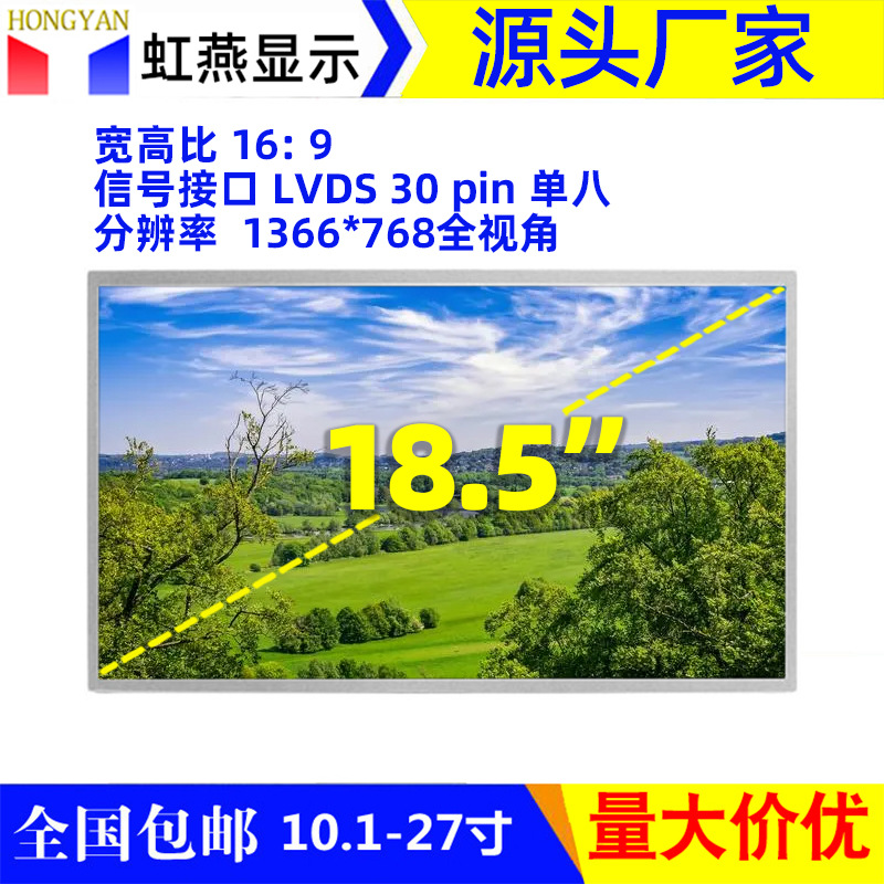 Layar LCD LVDS 18 inci 18.5 inci, sudut penuh 1366*768 layar LCD untuk iklan peralatan mesin