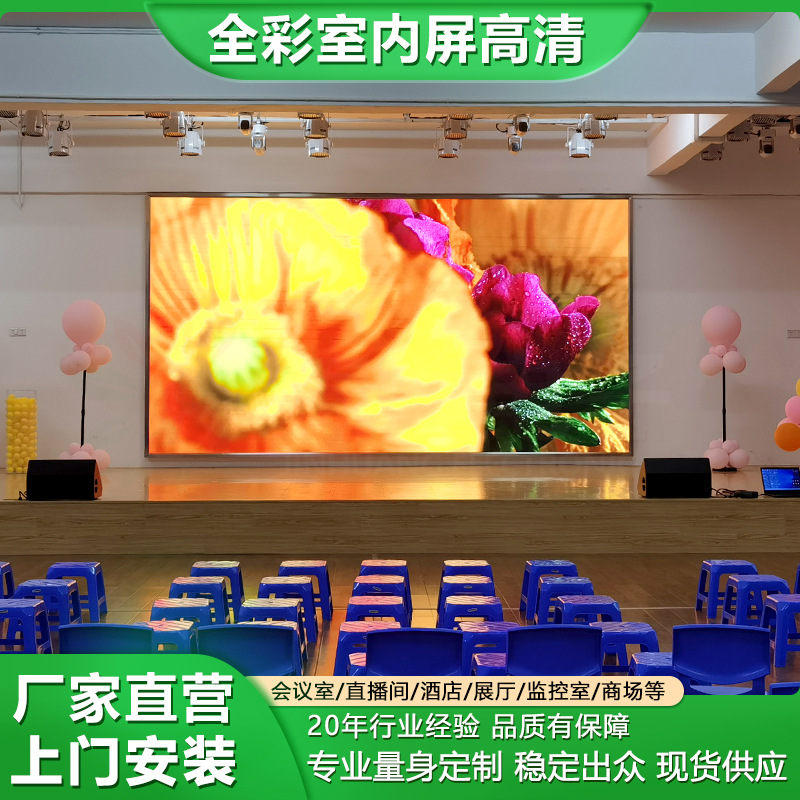 Layar LED dalam ruangan berwarna penuh untuk siaran langsung, dinding latar belakang layar LED, ruang konferensi, aula pameran, layar besar khusus dengan kecerahan tinggi.