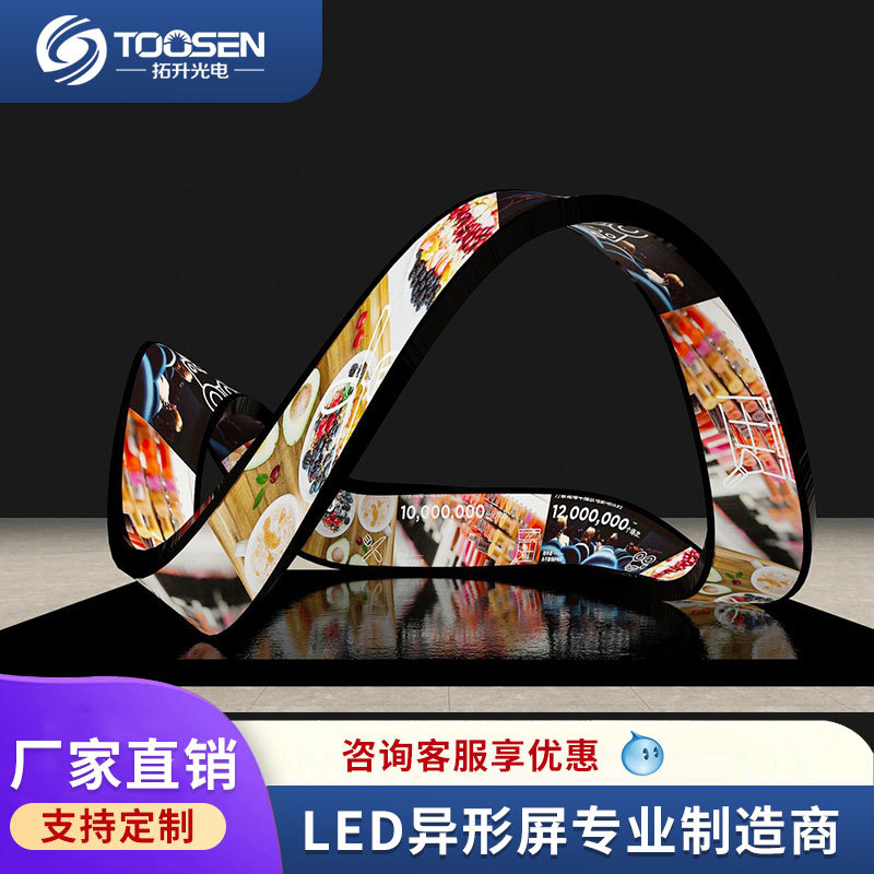 Layar Melengkung P1.25 Pita LED Modul Lunak Fleksibel Dalam dan Luar Ruangan Cincin Mobius berbentuk busur silinder berbentuk khusus