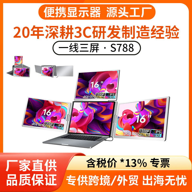 Tiga Layar Monitor Portabel Sambungan Garis Depan Notebook Wakil Layar Tampilan Portabel