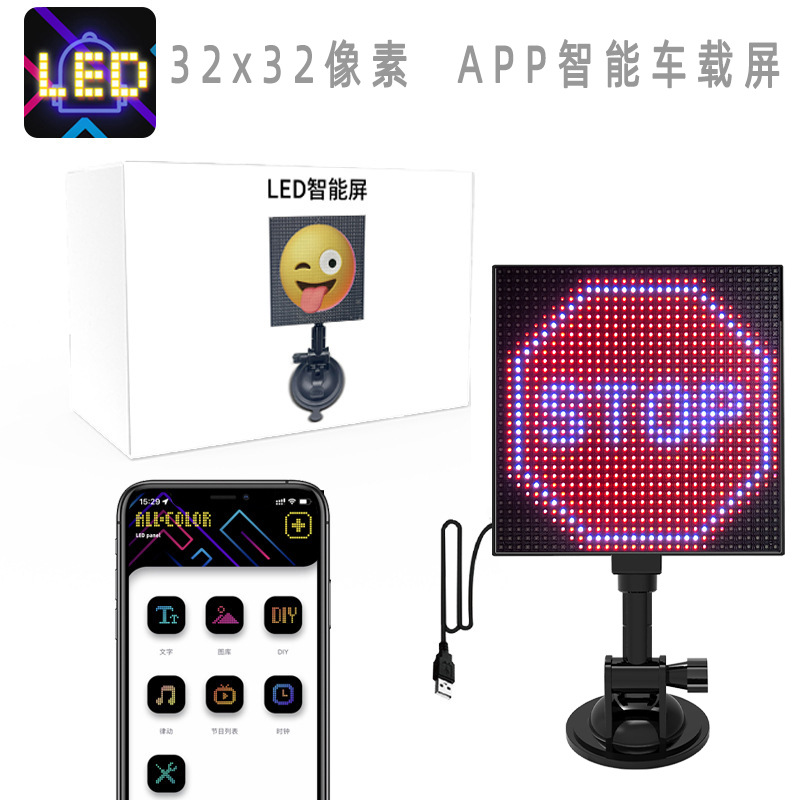 Lampu LED ekspresi jendela belakang mobil 32*32 piksel, aplikasi Bluetooth, layar mobil DIY, layar ekspresi warna penuh, layar berwarna