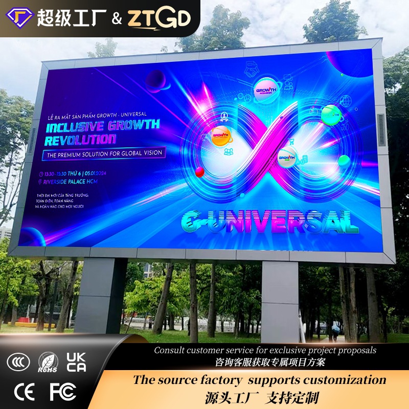 Layar LED penuh warna sambungan mulus, papan elektronik luar ruangan pengatur jarak kecil untuk iklan panggung layar besar HD
