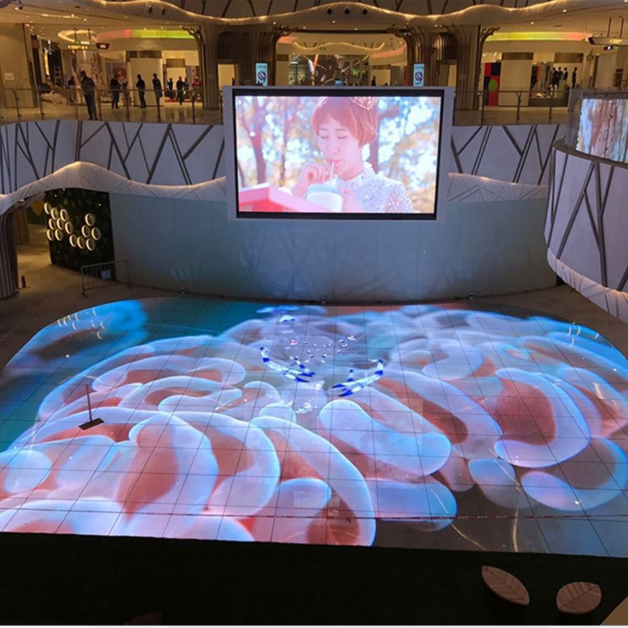 Layar ubin lantai LED interaktif P3.91 HD tahan air anti-selip 3D induksi interaktif ubin lantai LED produsen layar lantai