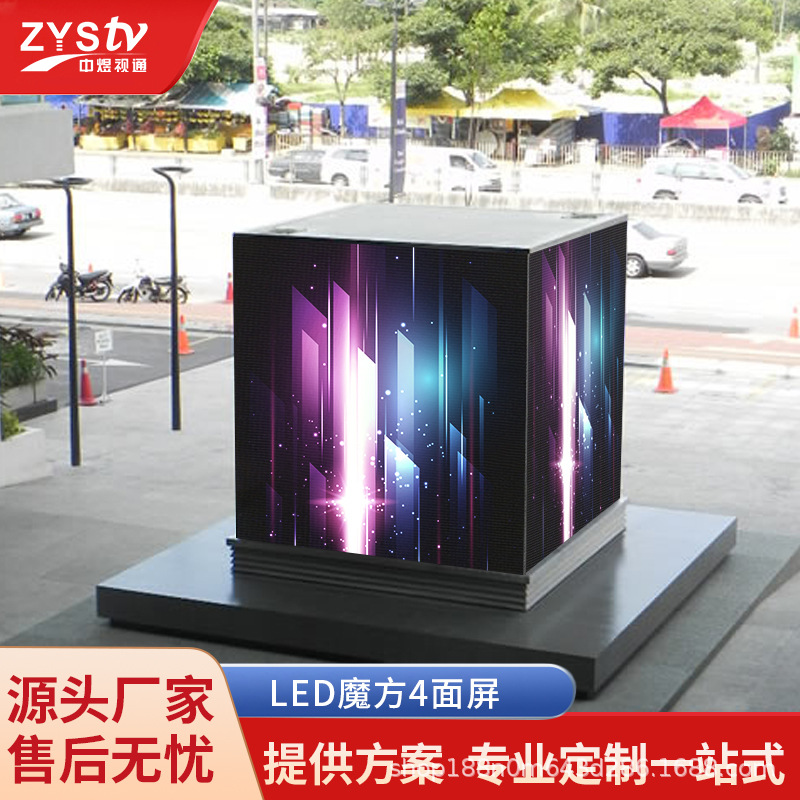 Layar kubus LED empat sisi dalam ruangan warna penuh recruitment cube shopping mall luar ruangan rak iklan perekrutan