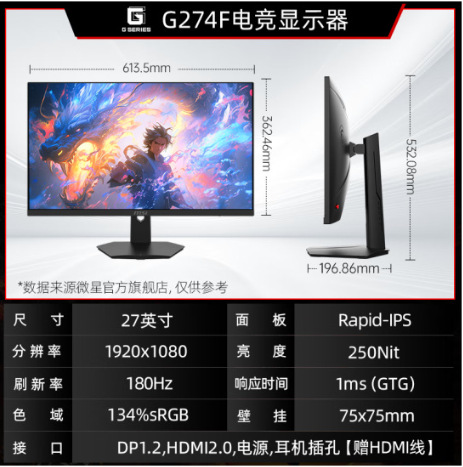 MAG 274F 27 Inch 1K 200Hz Layar Kuas Tinggi 0.5ms Komputer Kantor Komersial Layar Tampilan