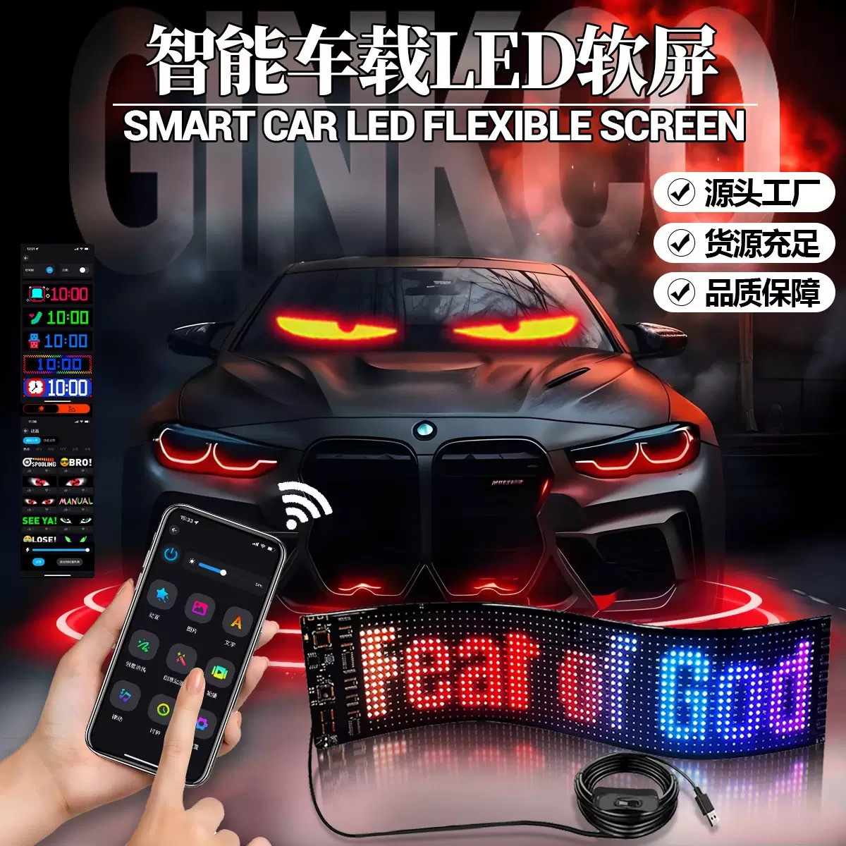 Layar tampilan mobil LED lintas batas khusus Bluetooth layar pixel kontrol suara layar iklan yang dapat ditekuk