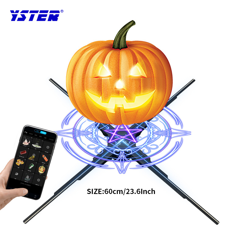3D layar kipas holografik LED manik-manik lampu suspensi berputar pencitraan mesin iklan holografik 60cm proyektor dukungan ponsel