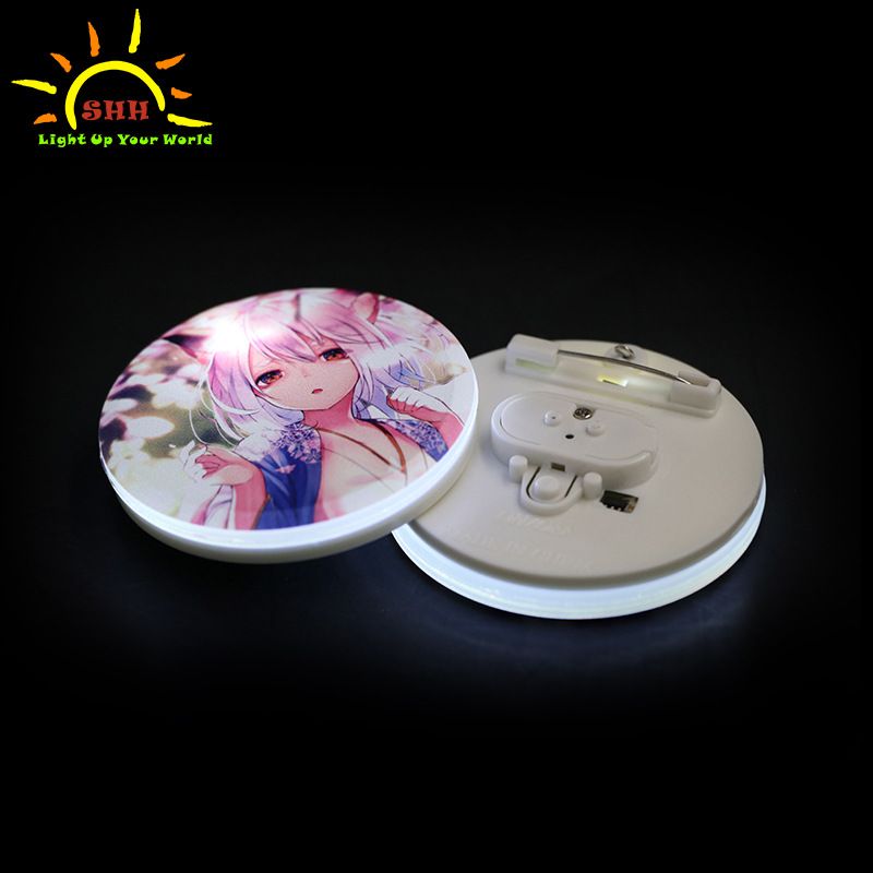 Kustom anime UV cetak LED buram lencana panel PS bulat bercahaya lencana lencana mikro flash
