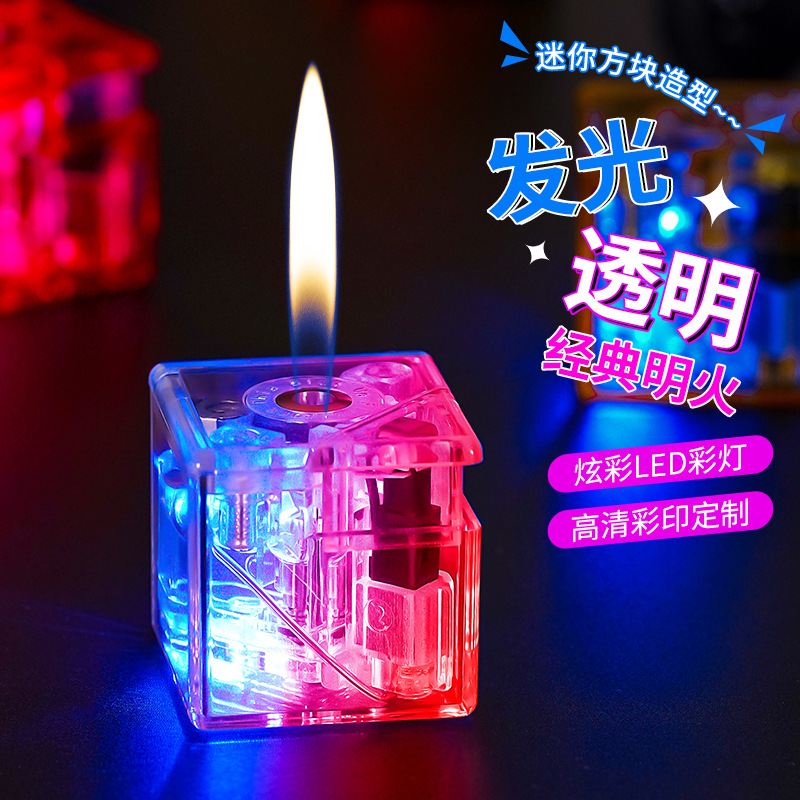 Cross-border pemantik api LED warna-warni pemantik api terbuka klasik badan transparan
