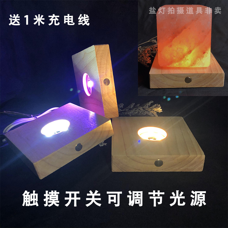 Lampu LED dekorasi kayu padat kotak, lampu garam kristal Kayu LED isi ulang daya dasar kerajinan hadiah