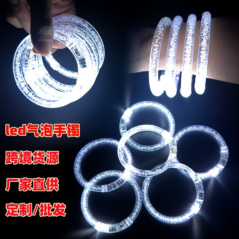 Pasokan lintas batas putih gelang bercahaya led gelembung flash gelang bar pesta cheer dukungan neon gelang