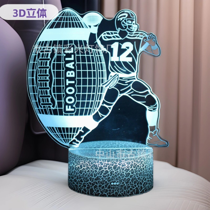 Lampu meja LED sentuh warna-warni dengan efek retak, lampu tidur 3D populer lintas batas, tema rugby, hoki es, untuk kamar tidur