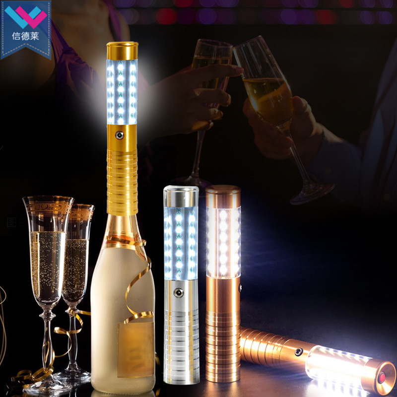 Tongkat flash sampanye logam campuran aluminium tebal bar sampanye anggur tongkat bercahaya pengisian genggam stik kilat produsen