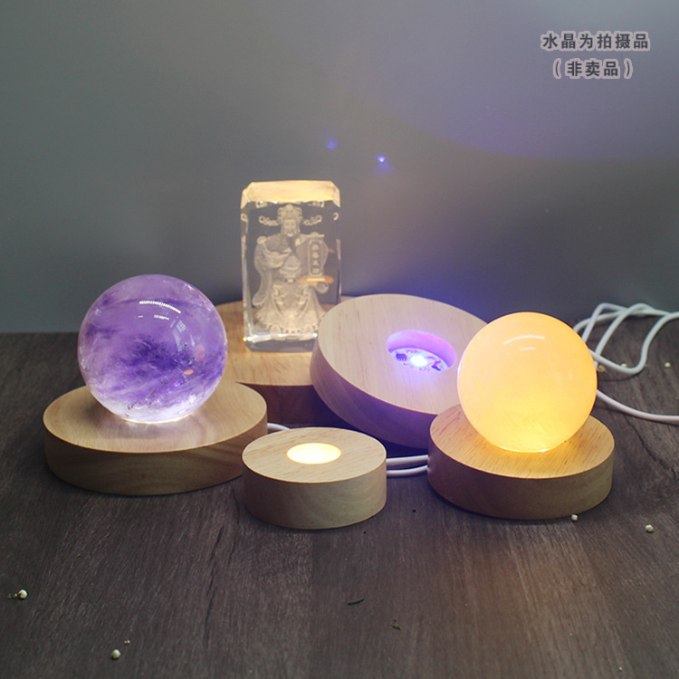 Lampu malam 3D lintas batas lampu malam LED kayu solid lampu malam bola kristal bulat Dekorasi Kerajinan dasar bercahaya led