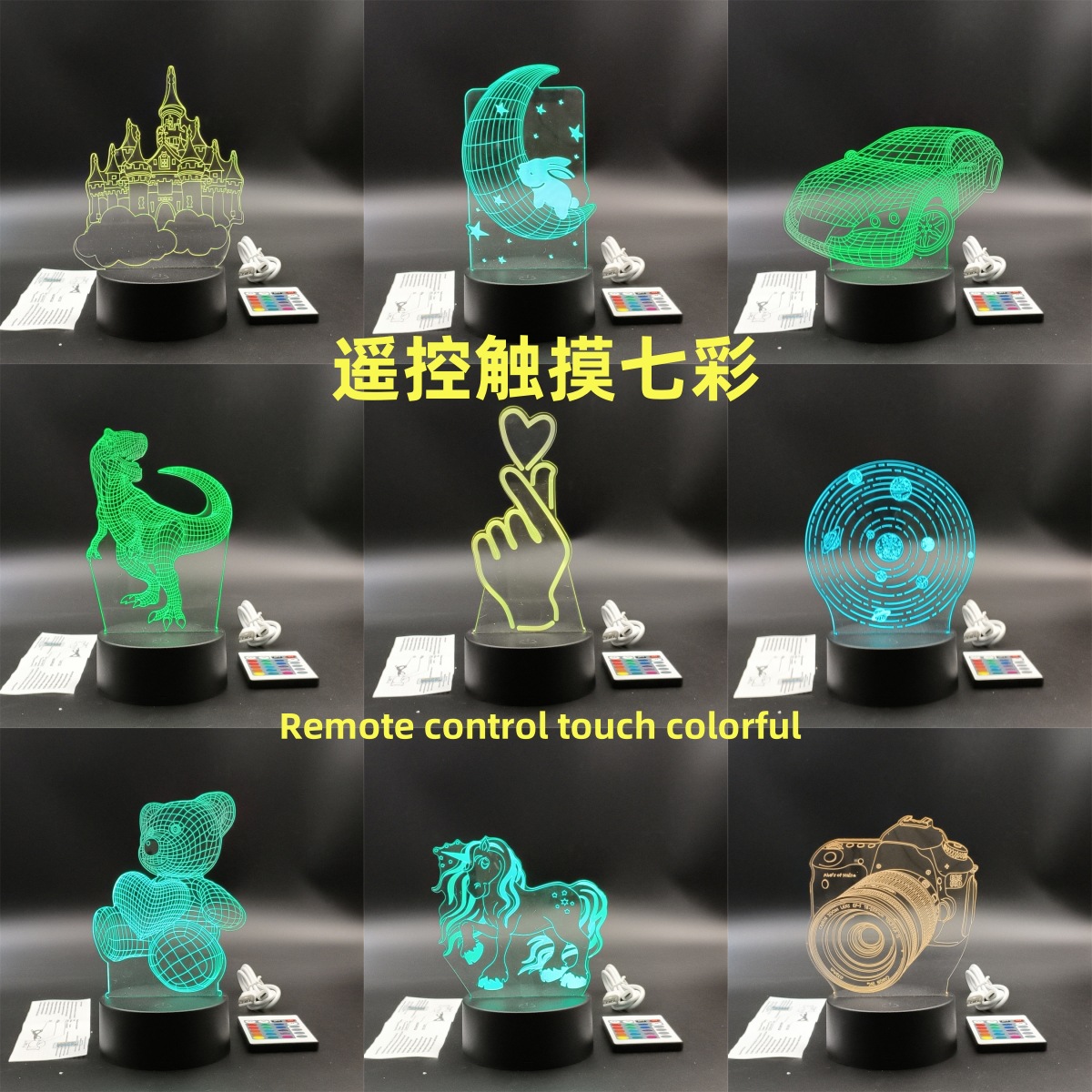 Lampu LED penuh warna, lampu malam 3D kreatif lintas batas, lampu remote control sentuh akrilik hadiah Natal
