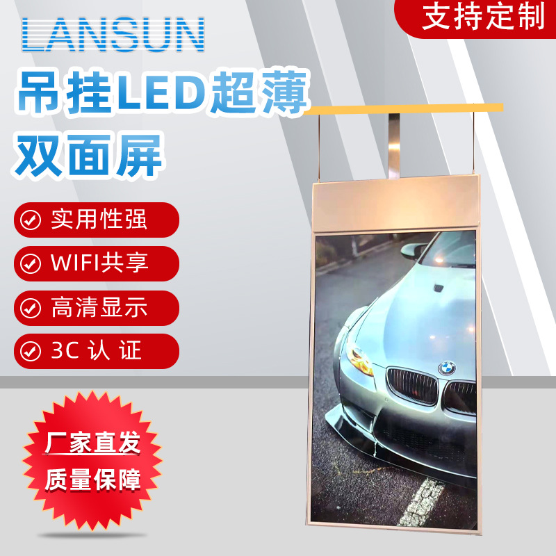 LED gantung 55 inci layar sisi ganda LCD tipis ultra tipis layar tampilan mesin iklan jendela mal grosir