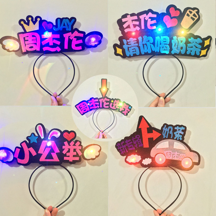 Jay Chou ikat kepala siang-cahaya pengangkat kecil desain bando pemancar cahaya bandana LED non-tenun produsen