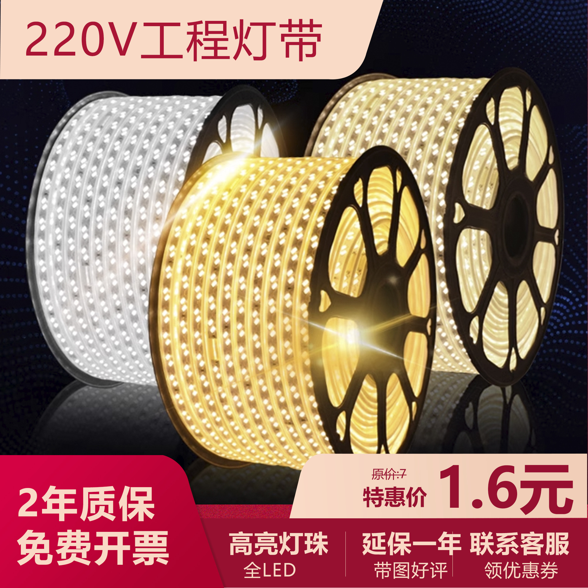 Lampu strip led 220V, lampu teknik luar ruangan, lampu emas tahan air biru menara derek konstruksi situs eksternal pencahayaan