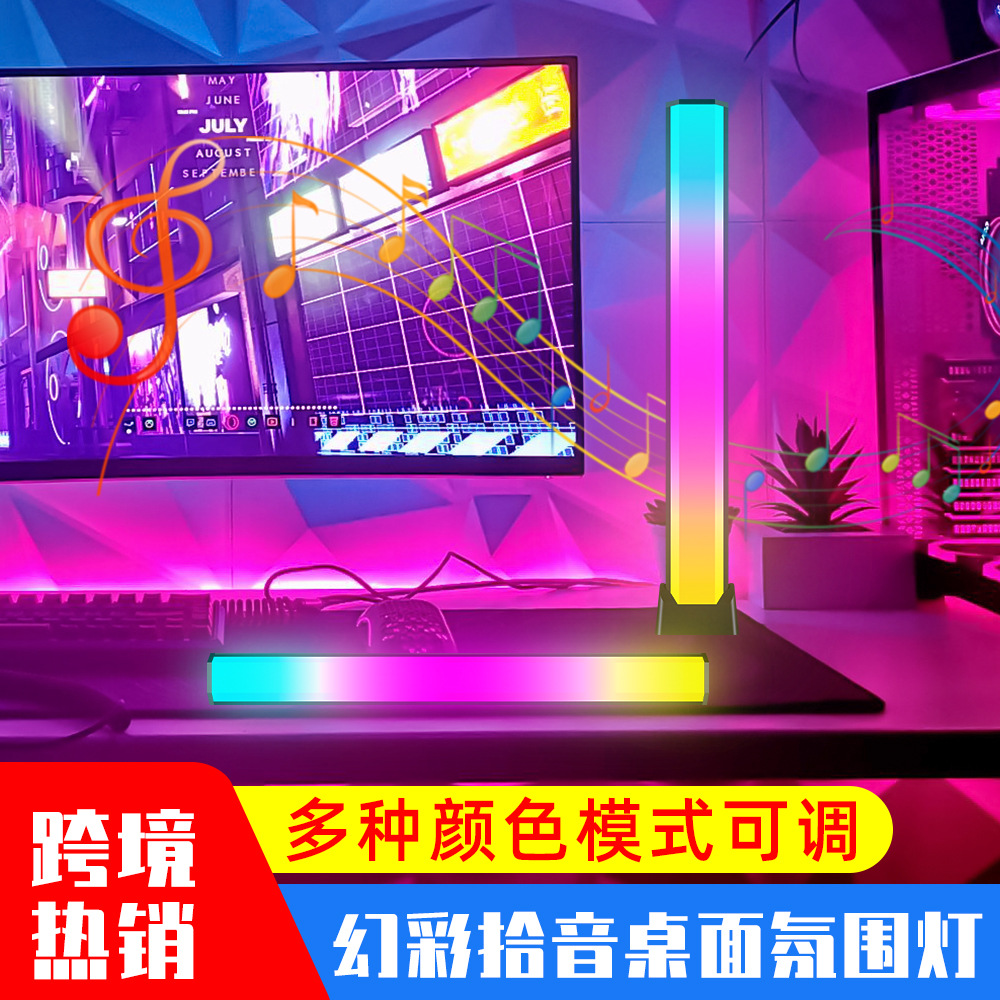 Qianrun lampu utama led komputer meja pickup musik, warna-warni RGB kendali suara irama induksi lampu malam