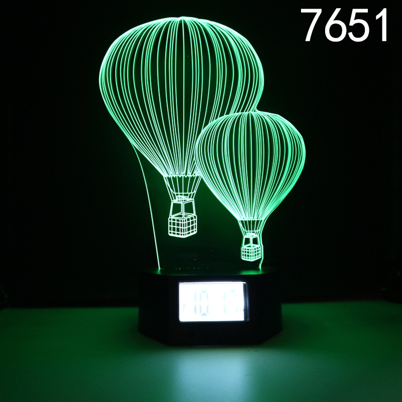 Lampu meja kecil 3D kreatif LED warna-warni seri pesawat roket balon udara panas dasar jam kecil