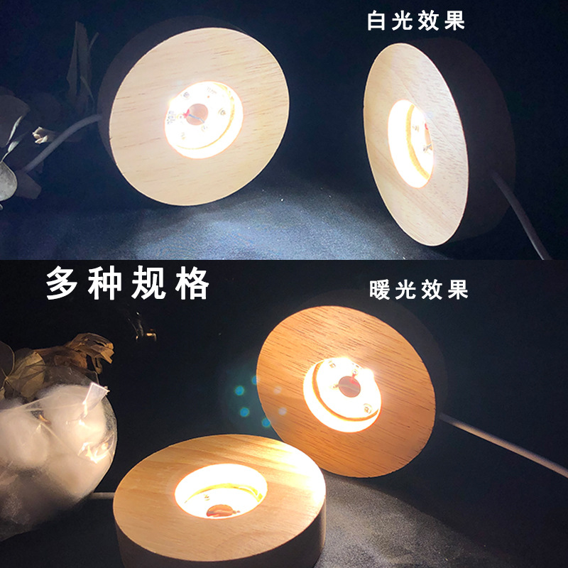Saklar USB kayu padat lampu malam LED, dasar lampu kristal kerajinan Dekorasi dasar bercahaya bola kristal dasar bercahaya