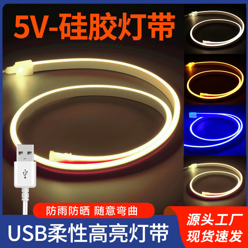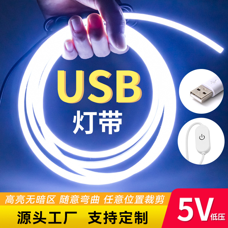 Lampu led strip fleksibel tegangan rendah, lampu bar cahaya harta karun, dekorasi komputer desktop antarmuka USB silikon neon fleksibel tegangan rendah 5v
