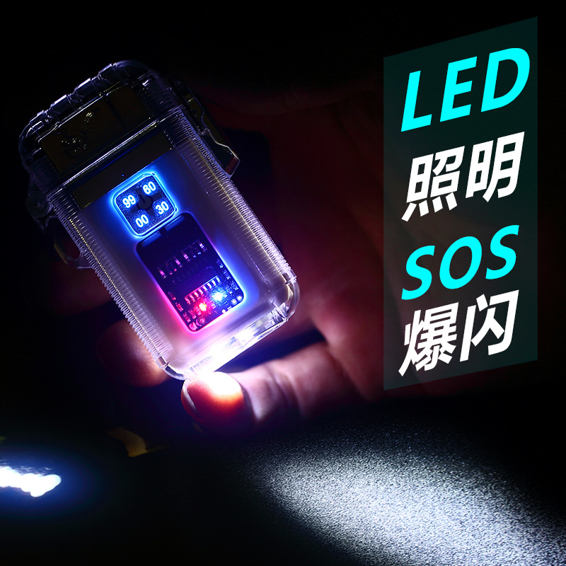 Korek api gas ganda, pemantik api gas elektrik ganda dengan tampilan LED digital transparan hadiah iklan