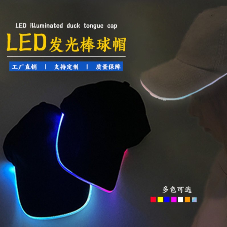Penjualan langsung pabrik topi bisbol serat optik bercahaya topi bisbol topi runcing led topi pesta bercetak LOGO