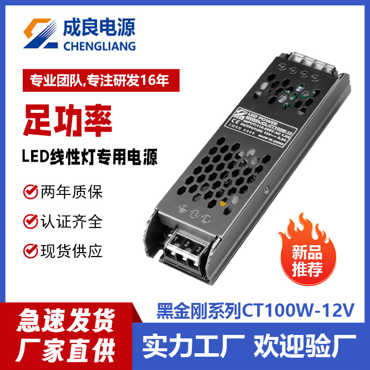 Lampu linear led berlian hitam dengan transformer 220V ke DC 100W 12V kotak lampu iklan catu daya senyap daya penuh