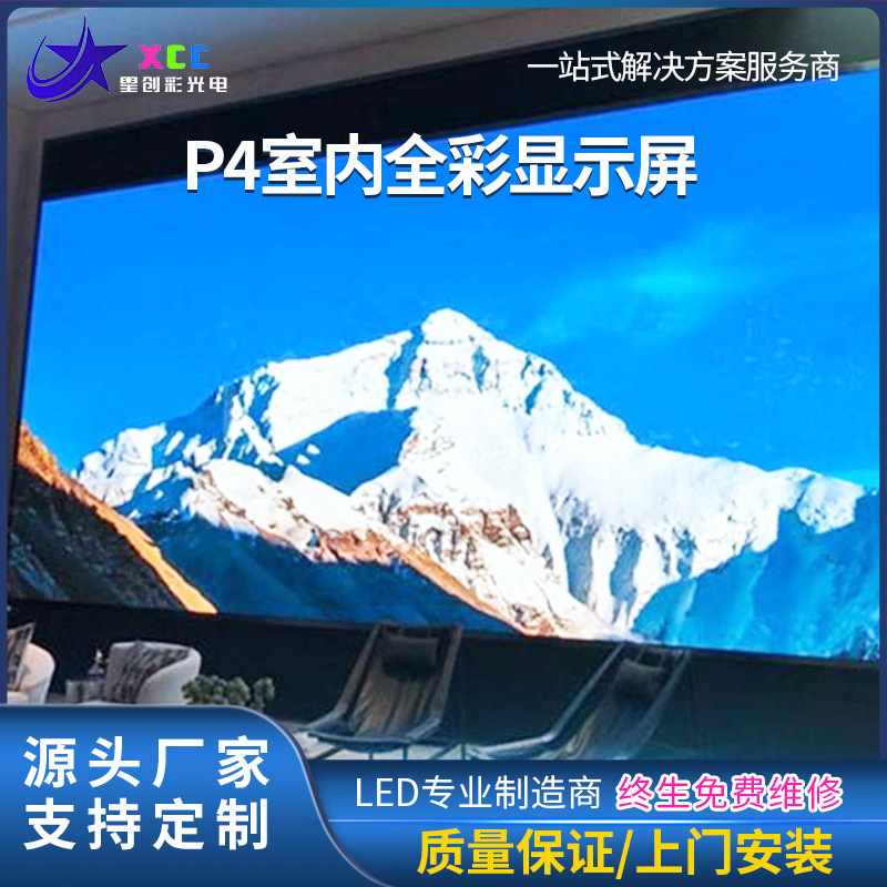 Layar LED P4 indoor full-color, layar tampilan panggung ruang konferensi, layar siaran langsung iklan indoor dan outdoor yang dapat disesuaikan