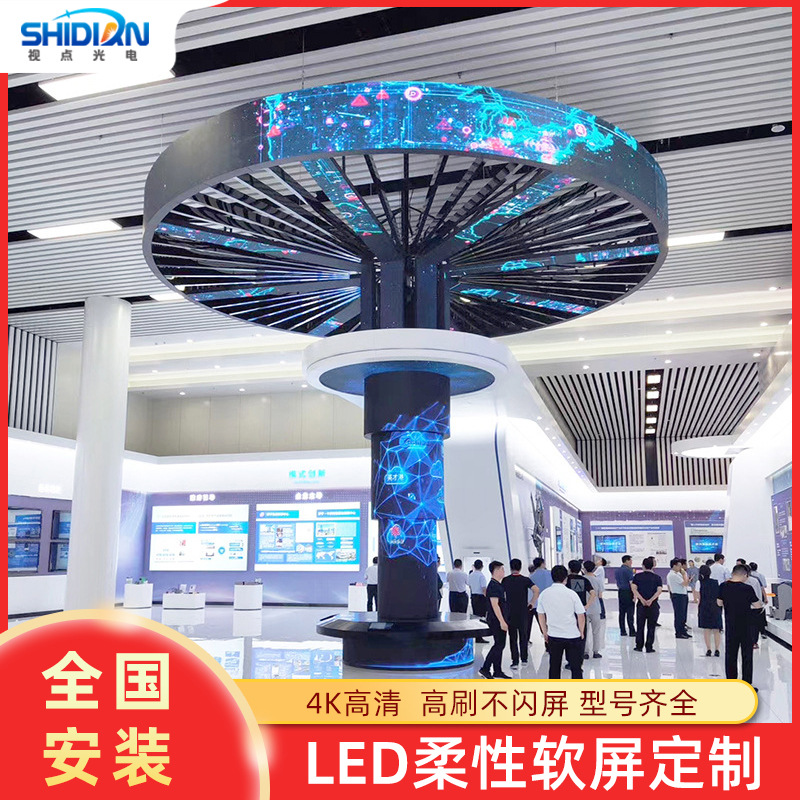 Custom-made tampilan LED tampilan luar ruangan dan luar ruangan penuh warna bulat silinder fleksibel layar lunak LED kreatif