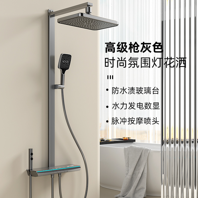 Setelan Pancuran kamar mandi, setelan Pancuran kamar mandi, kepala pancuran tampilan digital cerdas, tombol piano abu-abu, lapis air
