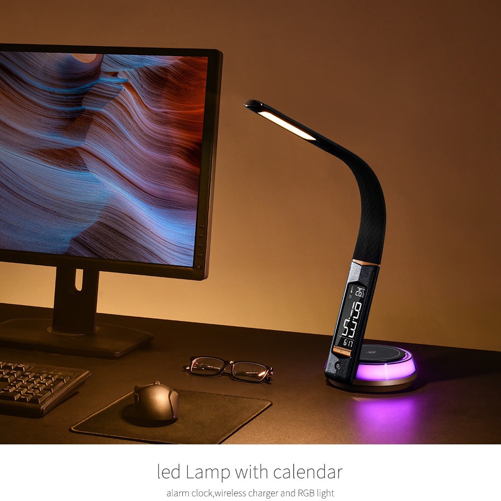 Lampu meja led nirkabel Kreatif, lampu meja kantor layar LCD dengan waktu multifungsi pelindung mata membaca lampu malam