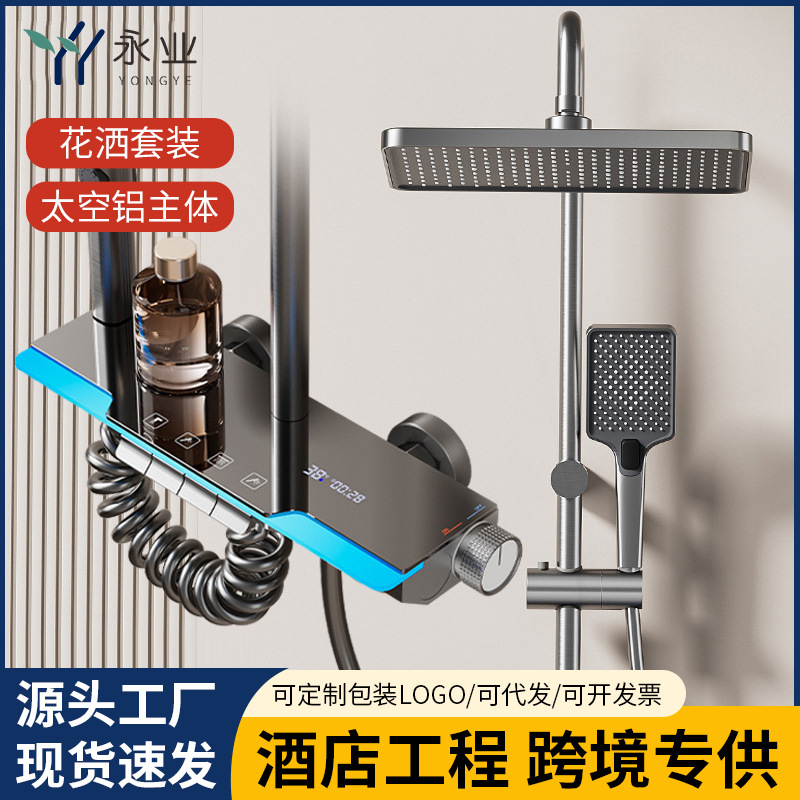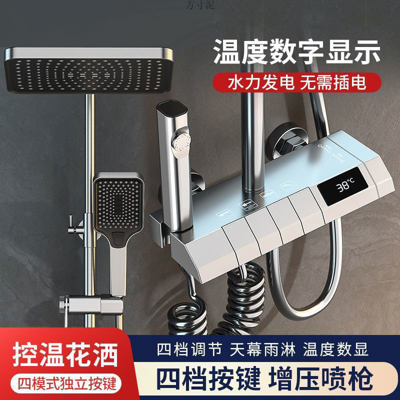 Shower suit rumah tangga, tampilan shower digital cerdas tembaga, shower kamar mandi bertekanan hujan putih